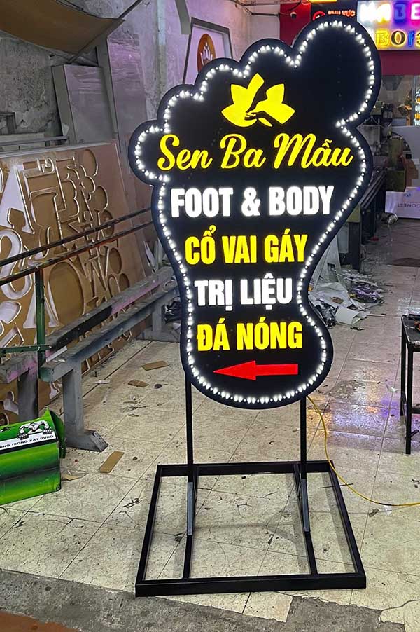 - Biển led vẫy spa, thẩm mỹ viện: Thường sử dụng biển mica hút nổi in logo thương hiệu hoặc biển LED vẫy với viền chạy đuổi nhẹ nhàng, tạo cảm giác thư giãn và chuyên nghiệp.